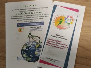 06 березня 2020 року працівниками лабораторії науково-дослідного та навчально-методичного забезпечення дисциплін еколого-природничого спрямування ТОКІППО проведено обласний семінар-практикум для учасників інноваційного освітнього експерименту регіонального рівня «ЕКО-школа» на тему «Інноваційна дослідно-експериментальна освітня діяльність – ЕКО-школа: креативно і практично».