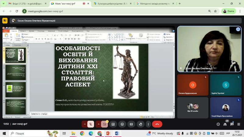 26 листопада 2025 року відбулися педагогічні читання «Особливості освіти й виховання дитини ХХІ століття: правовий аспект» для заступників директорів з виховної роботи, класних керівників, педагогів-організаторів закладів загальної середньої освіти області. Модератором заходу була методист центру виховної роботи, захисту прав дитини та громадянської освіти ТОКІППО Оксана Сесик.