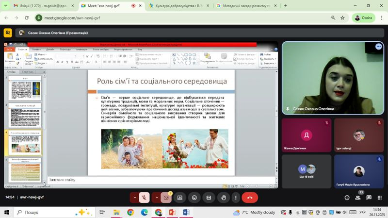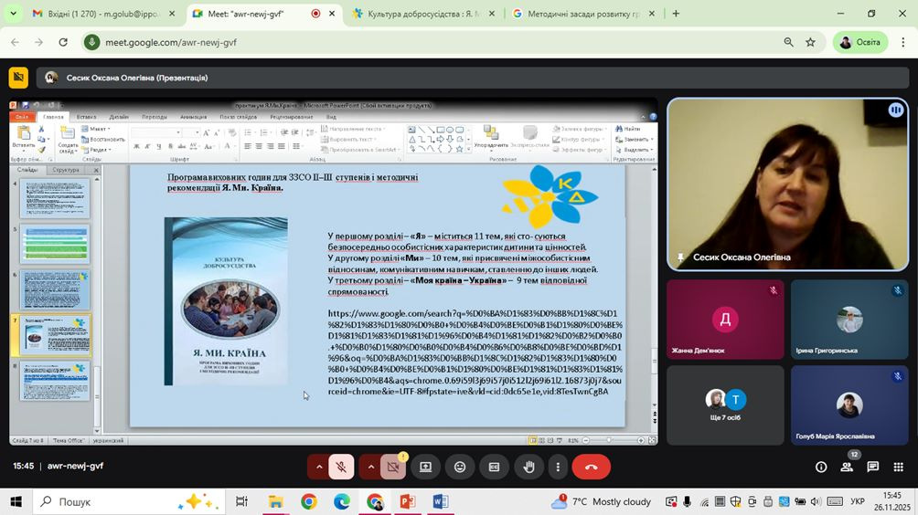 - Методичні засади розвитку громадянської освіти та формування соціальної компетентності учнів за програмою виховних годин «Я. Ми. Країна» курсу «Культура добросусідства» (Марія Голуб).