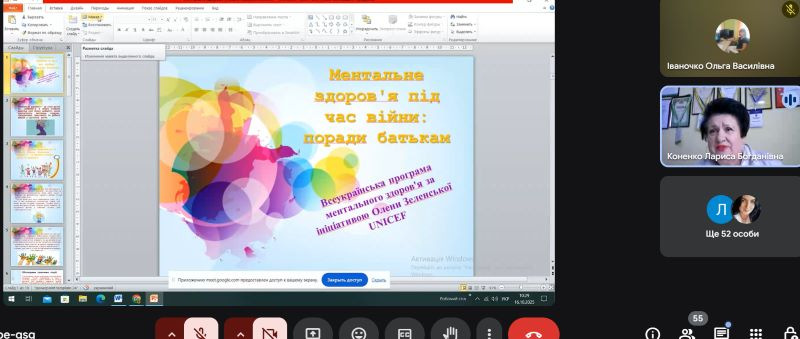 16 жовтня 2025 року за допомогою інтернет ресурсу Google Meet відбувся практикум на тему «Підтримка ментального здоров'я молодших школярів». Для участі в заході були запрошені вихователі груп подовженого дня ЗЗСО Тернопільської області.