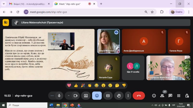 25 лютого 2026 року, у день народження Лесі Українки, у Тернопільському ОКІППО на платформі сервісу відеоконференцій Google Meet відбулися педагогічні читання «Українська література: ювіляри 2026 року», учасниками яких стали майже тридцять учителів української мови і літератури області та консультантів центрів професійного розвитку педагогічних працівників.