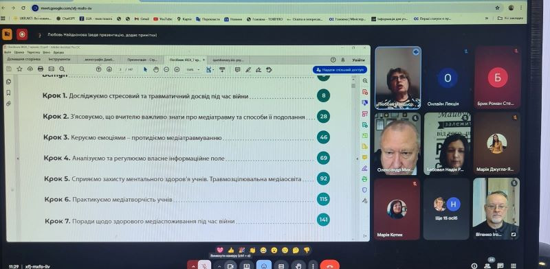 Учасники онлайн-засідання творчої групи вчителів обговорили практичні аспекти реалізації завдань інноваційного освітнього проєкту на тему «Організація впровадження наскрізної моделі медіаосвіти в умовах інформаційної агресії», обмінялися ідеями та досвідом щодо розробки в закладах освіти, які беруть участь в інноваційному освітньому проєкті, наскрізної моделі медіаосвіти.
