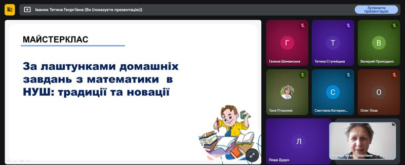 02 лютого 2026 року, відповідно до плану роботи Тернопільського ОКІППО, відбувся онлайн-майстер-клас «За лаштунками домашніх завдань з математики в НУШ: традиції та новації». Захід зібрав на платформі Google Meet близько 50 учасників — вчителів математики та консультантів центрів професійного розвитку педагогічних працівників області.