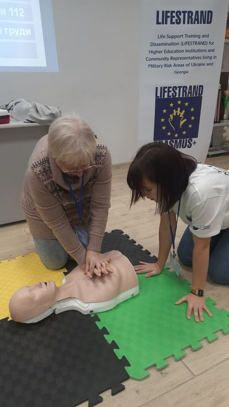 Упродовж тренінгу учасники практично відпрацювали навички проведення серцево-легеневої реанімації, транспортну іммобілізацію та допомогу при сторонньому тілі верхніх дихальних шляхів; з’ясували спосіб використання та накладання джгута типу CAT (турнікету), джгута типу «Есмарх», імпровізованого джгута-закрутки, тиснучої пов’язки типу «Ізраїльський бандаж»; тампонування рани.