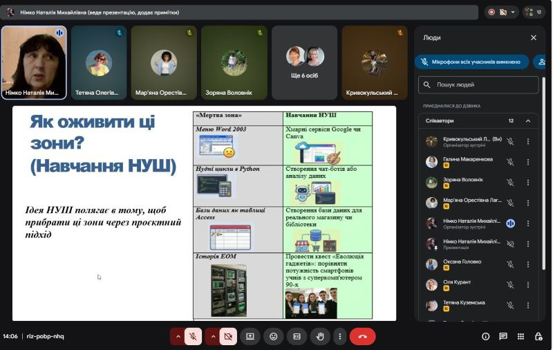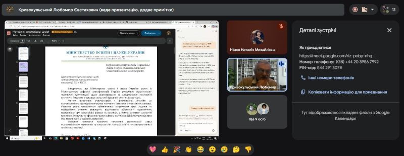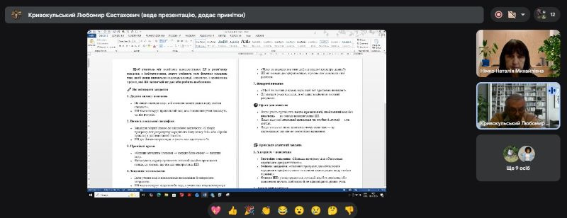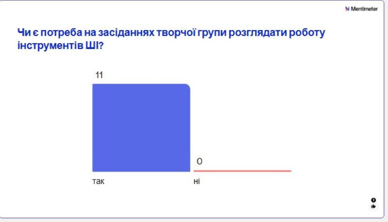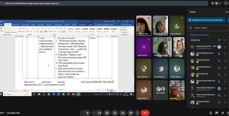 Керівник творчої групи Наталія Німко, методист центру інформатики, ІКТ та ДО ознайомила учасників творчої групи з планом роботи на рік та провела опитування щодо потреб ознайомлення з інструментами ШІ.