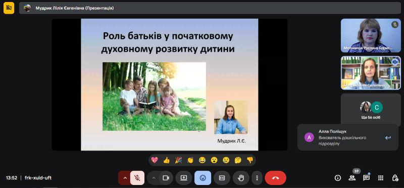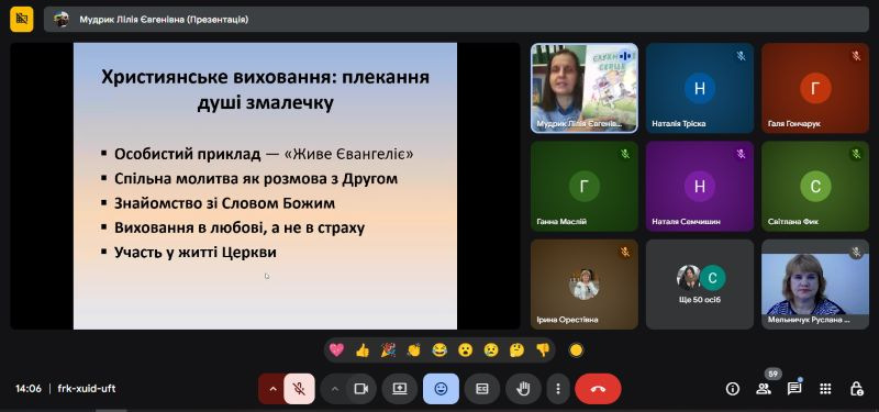 Оновлення змісту дошкільної освіти вимагає особливої уваги до виховання морально стійкого та духовно багатого покоління. Дошкільний вік є фундаментом формування духовно-моральних цінностей, що визначає подальшу життєву траєкторію та світогляд дитини. На платформі сервісу відеоконференцій Google Meet Тернопільського ОКІППО 17 грудня 29025 року проведено обласний семінар для педагогічних працівників закладів дошкільної освіти «Духово-моральне виховання – запорука гармонійно розвинутої особистості дошкільника». Запрошені спікери обговорили ключові аспекти теми та поділились своїми доробками.