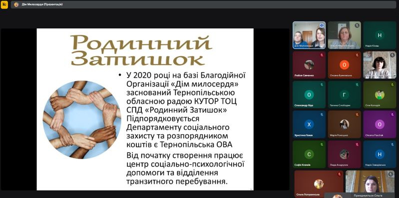 Ольга Левицька та Валентина Кукош, соціальні педагоги КУ ТОР Тернопільського обласного центру соціально-психологічної допомоги «Родинний затишок», висвітлили тему: «Соціально-педагогічний супровід дітей з особливими освітніми потребами в умовах інклюзивного навчання», акцентувавши на специфіці роботи закладу та індивідуальній підтримці, якою охоплено різні категорії осіб з ООП.