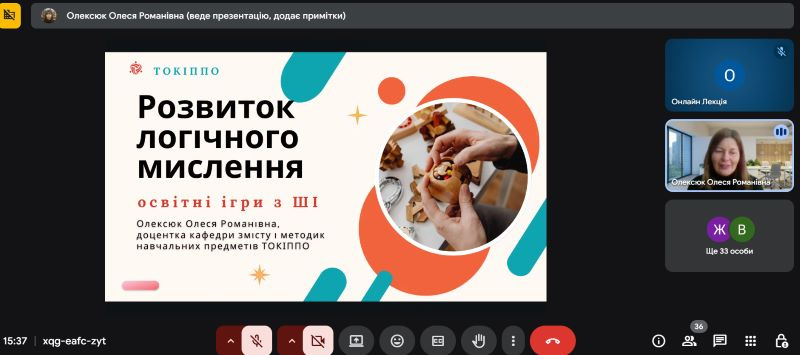 Олеся Олексюк, доцент кафедри змісту і методик навчальних предметів, кандидат педагогічних наук у своєму виступі розкрила таємниці розвитку критичного та алгоритмічного мислення через освітні ігри з використанням штучного інтелекту.