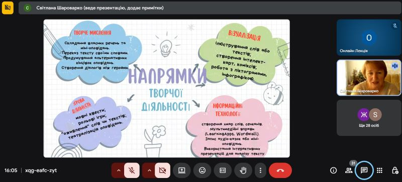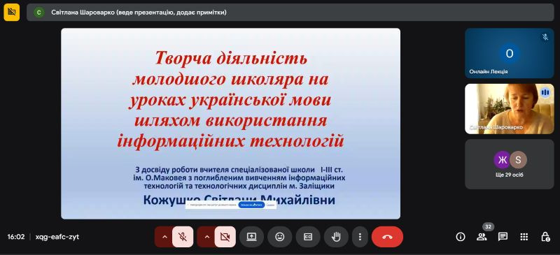 Своїм досвідом роботи щодо ефективного використання цифрових інструментів для розвитку творчих здібностей учнів поділилася Світлана Кожушко, вчитель початкових класів СШ І–ІІІ ст. ім. О. Маковея м. Заліщики,