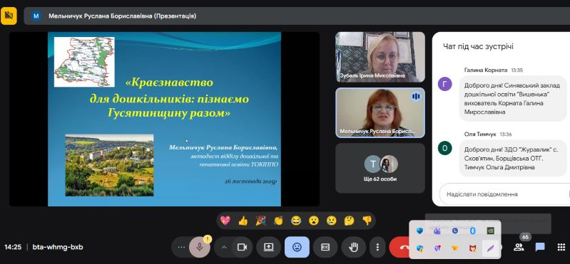 Саме про це педагогічні працівники закладів дошкільної освіти Тернопільської області мали можливість почути на семінарі «Шляхи реалізації та перспективи розвитку «Український віночок. Регіон», який відбувся 26 листопада цього (2025) року в онлайн просторі Тернопільського ОКІППО (платформа GoogleMeet) .