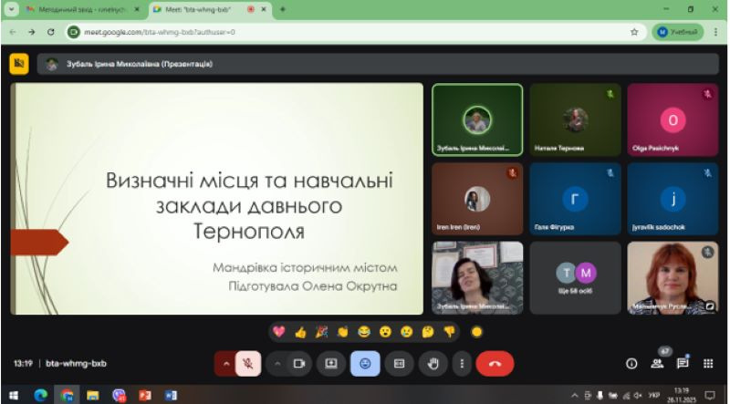 Слово практикам… Всі учасники семінару, під супровід Окрутної О.М., вихователя Смиковецького закладу дошкільної освіти "Усмішка" Великобірківської селищної ради, мали можливість помандрувати (онлайн) давніми закладами освіти та сакральними спорудами Тернополя. Дуже цікаві факти, події, аргументація і екскурсоводівські здібності Олени Миколаївни заслуговують окремої уваги. Дякуємо!