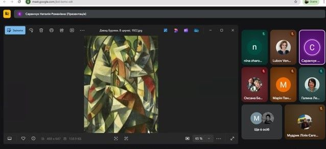 Наталія Саранчук, методист відділу методики навчальних предметів суспільно- гуманітарного та естетичного циклів ТОКІППО, зосередила увагу на формуванні мистецької компетентності здобувача освіти засобами впровадження інноваційних технологій на уроках з предметів духовно- морального спрямування. Особливою частиною став показ та аналіз творів видатних українських художників. Демонстрація робіт Олександра Мурашка, Михайла Дмитренка, Давида Бурлюка, Марії Приймаченко була важливою для розуміння теми заходу. Це було не просто перелічення імен, а комплексний аналіз, який допоміг зрозуміти першоджерело сучасних нетрадиційних підходів.