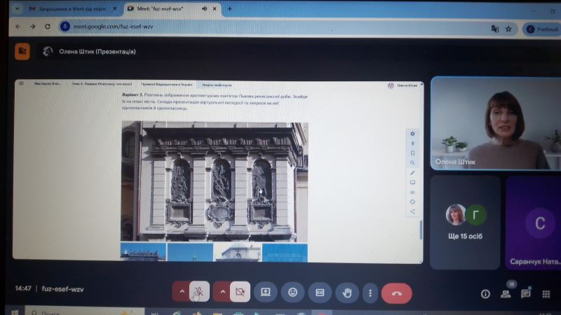 10 жовтня 2025 року в Тернопільському обласному комунальному інституті післядипломної педагогічної освіти на платформі сервісу Google Meet проведено засідання проблемної групи для учителів мистецтва та консультантів центрів професійного розвитку педагогічних працівників на тему «Особливості вивчення мистецтва у 8 класі Нової української школи (2 засідання)».